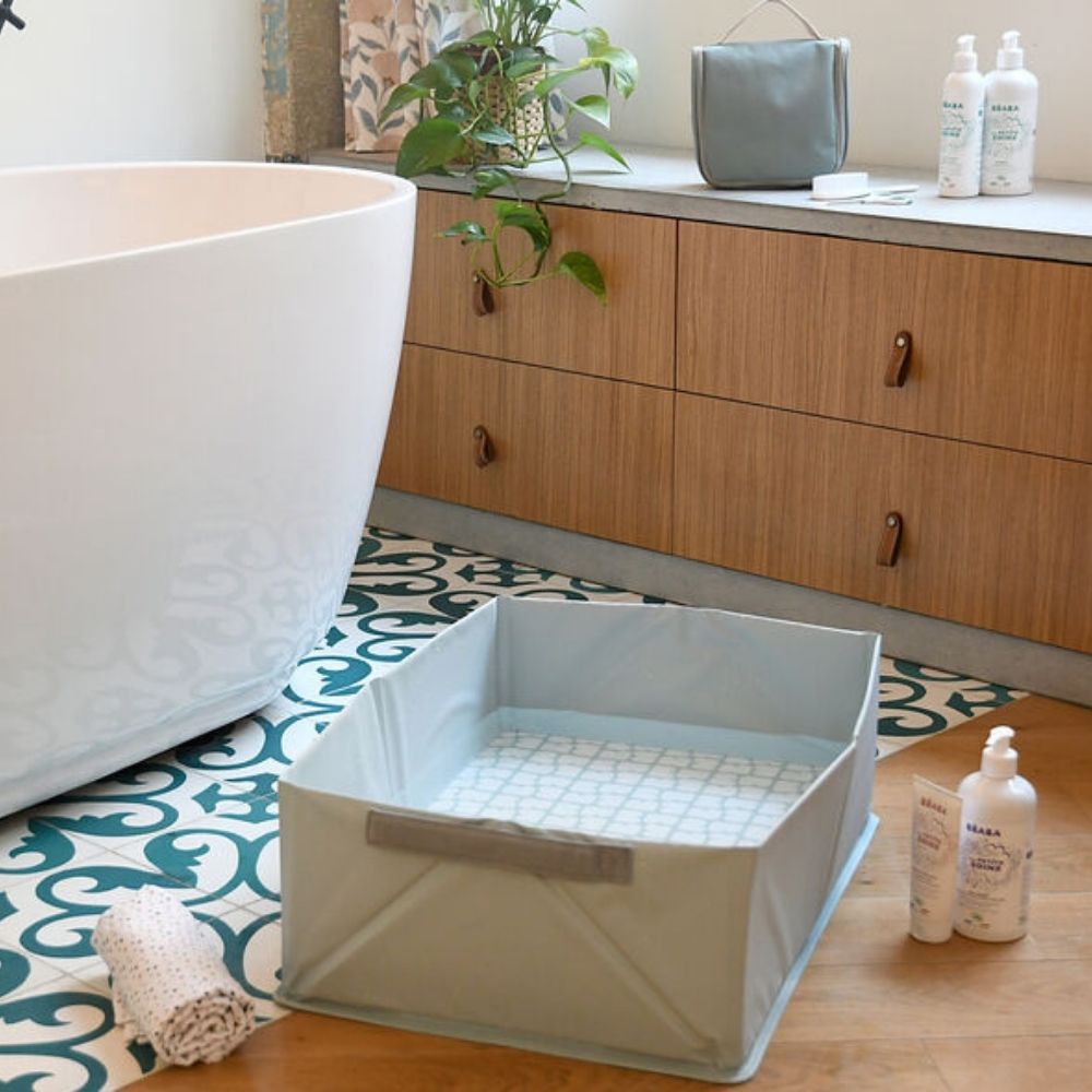 Сгъваемата вана от Beaba е идеална за разходки и пътувания.