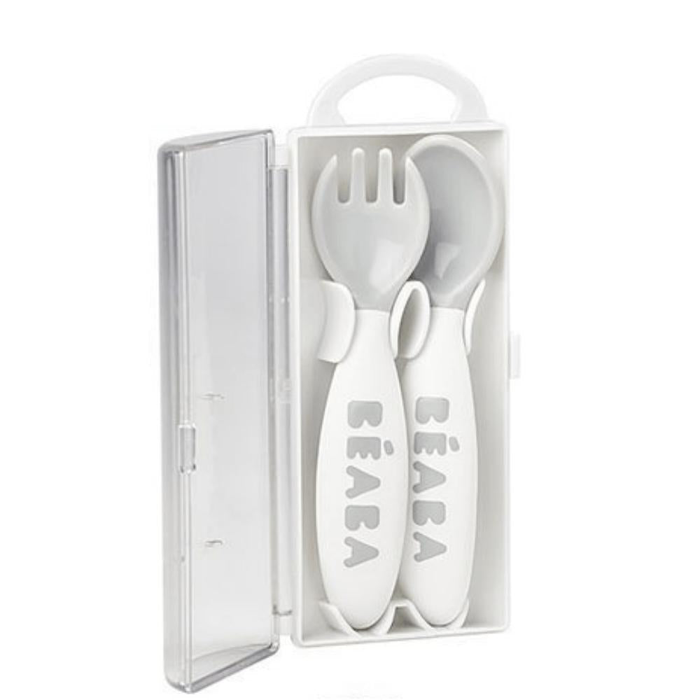 Beaba Детски прибори за хранене от пластмаса в сив калъф