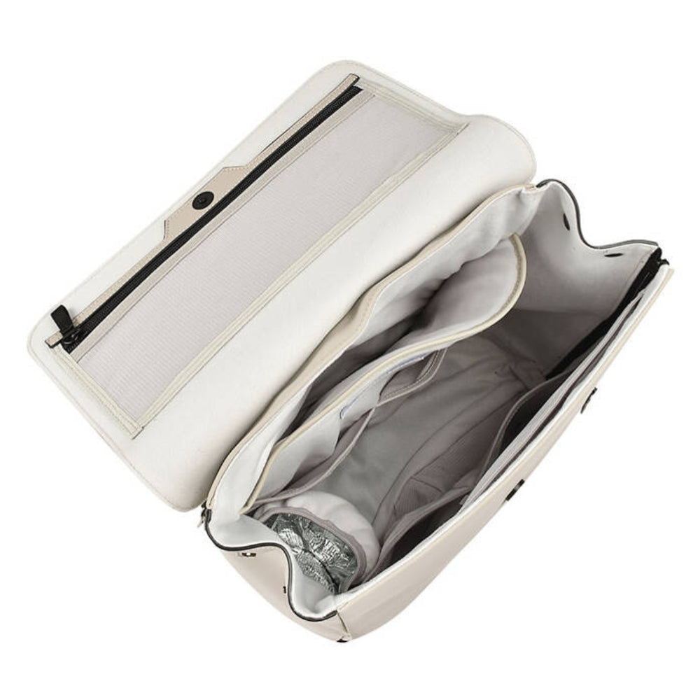 Благодарение на включените ремъци, раницата за родители Beaba може удобно да се закрепи към рамката на количката, което я прави лесна за използване, докато се разхождате с детето си.