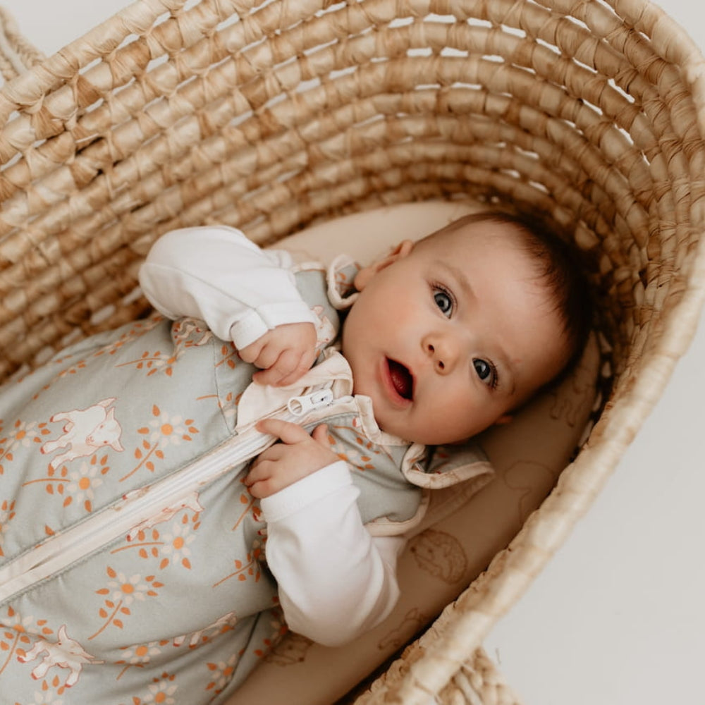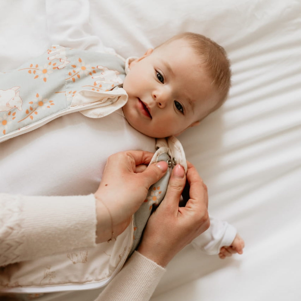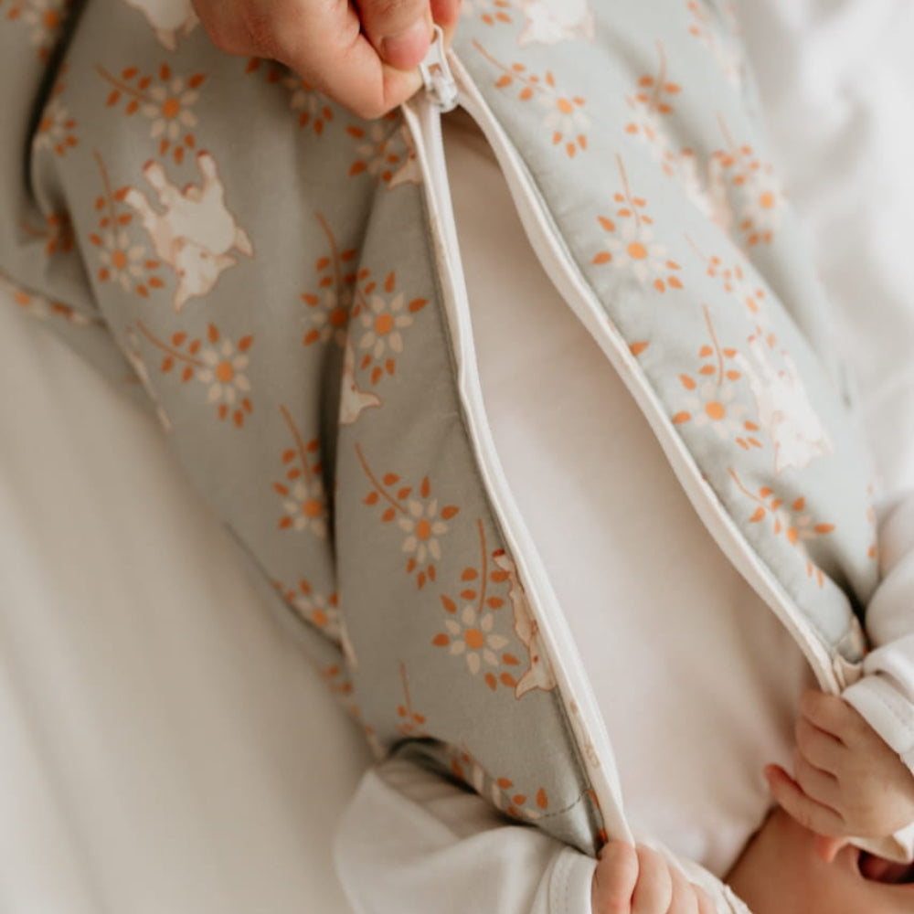 Изработен от 100% дишащ памук, спалният чувал осигурява оптимална температура, докато бебето спи, като предотвратява прегряване и предпазва от студа.