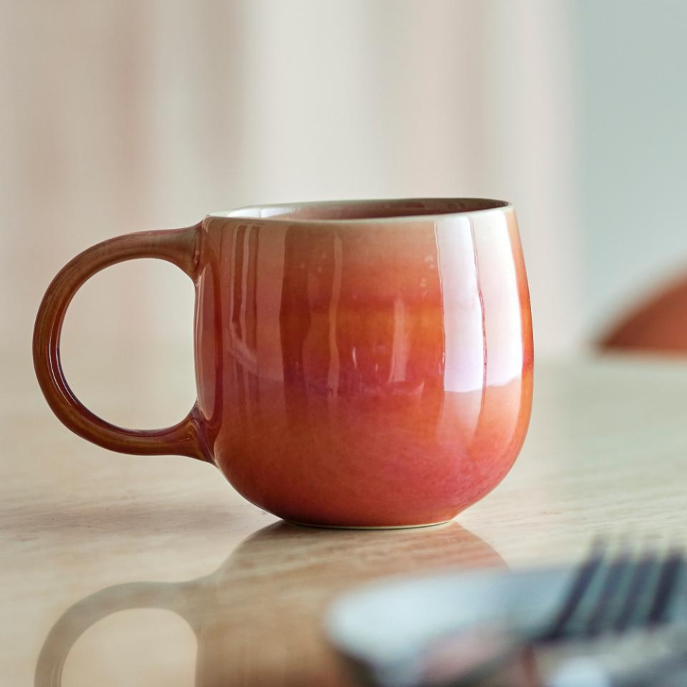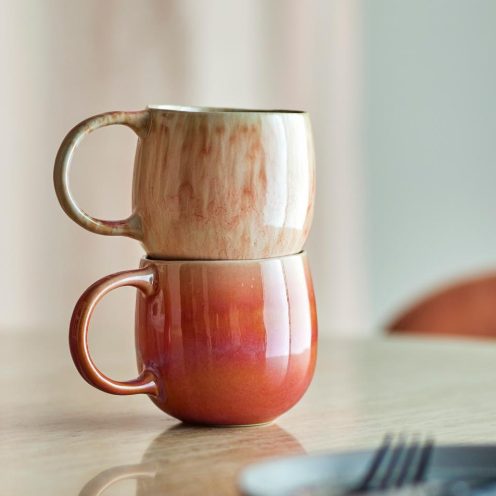Този комплект чаши от каменна керамика има мека, заоблена форма и лъскава повърхност, което го прави красиво представяне на масата за ежедневните ви ритуали с кафе или чай.