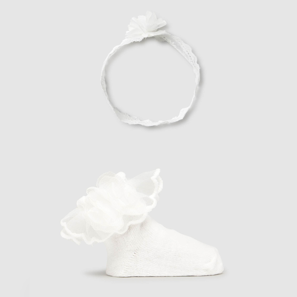 Mayoral бебешки чорапи и лента за глава за бебето в бяло