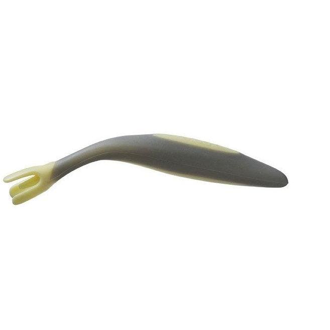 Необичайната вилица е проектирана да се адаптира към размера и формата на устата на бебето.