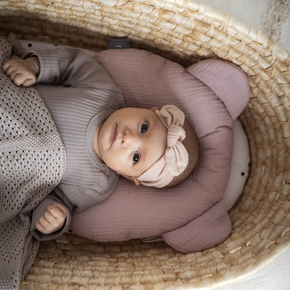 Препоръчваме да използвате тази възглавница в бебешкото кошче, люлеещ стол или количка.