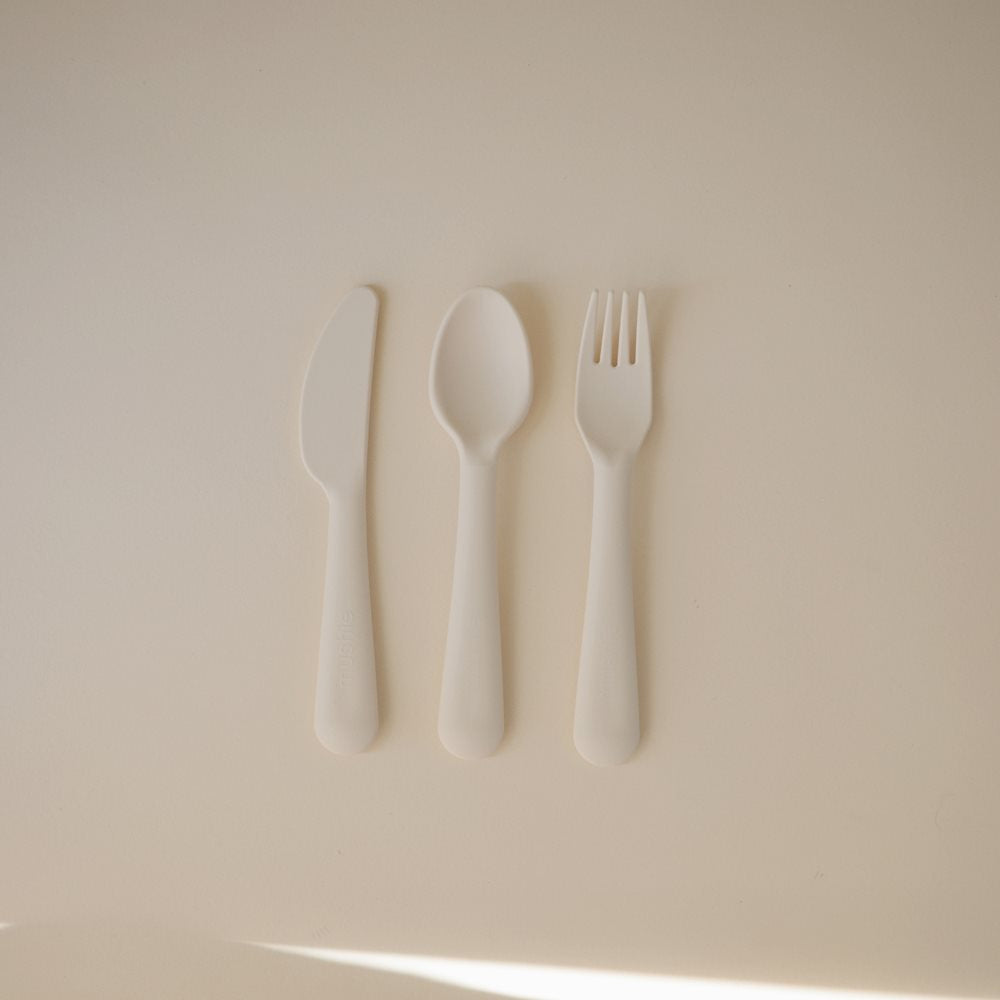 Детски прибори за хранене, 3 броя, в цвят слонова кост, от марката Mushie.