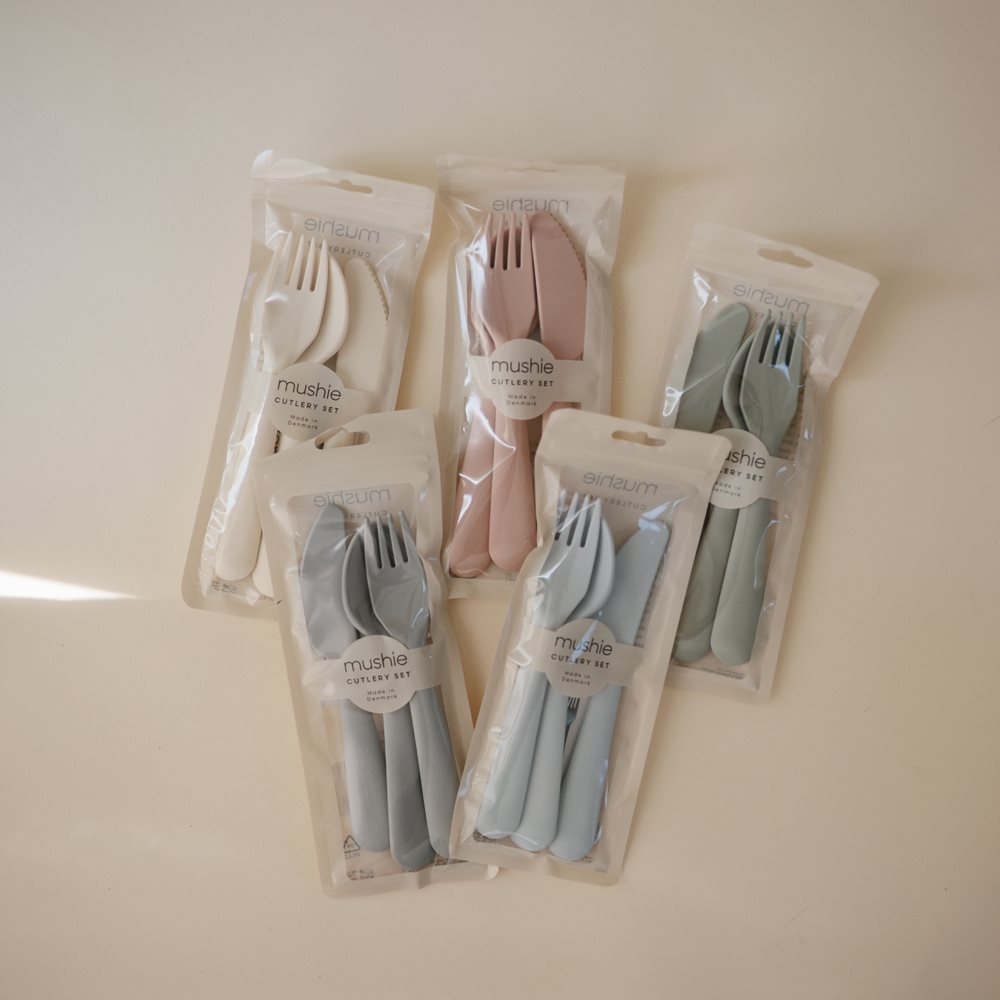 Детските прибори за хранене Mushie са издръжливи и лесни за почистване – подходящи за миене в съдомиялна машина.