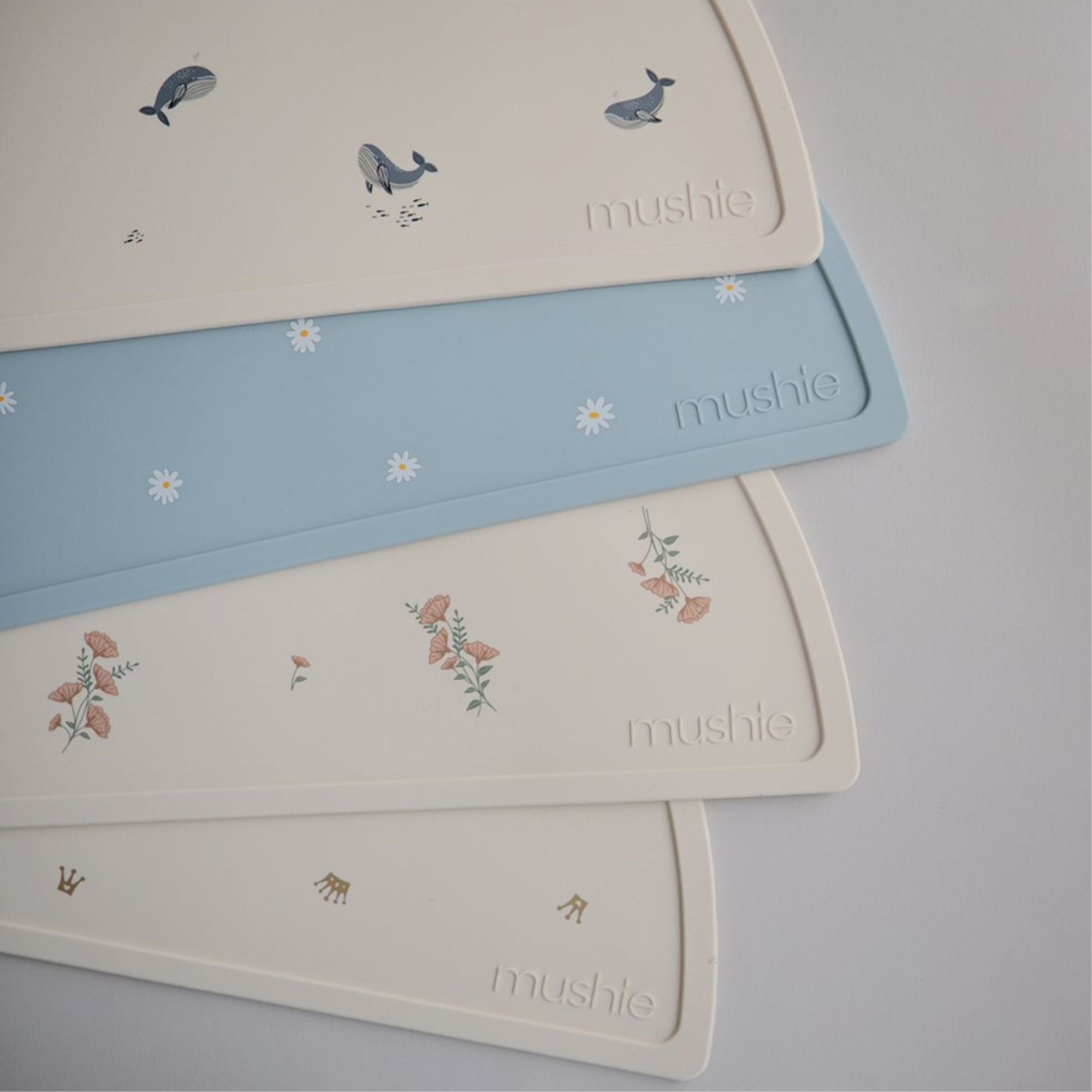 Силиконовата подложка за маса за бебета Mushie е незаменима за първите самостоятелни хранения на вашето дете.