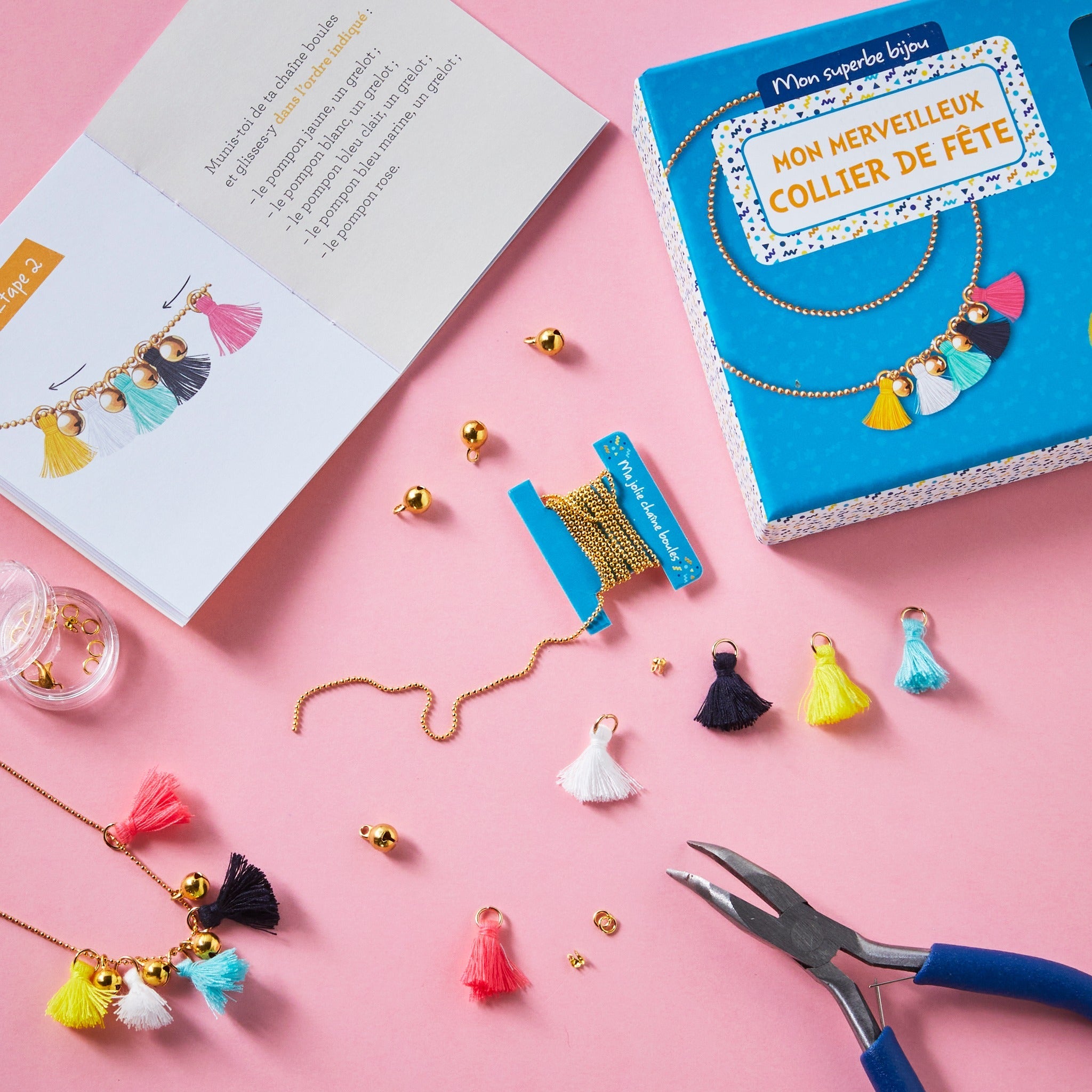 Прекрасен комплект за изработка на бижута, колие с помпони, което детето може да изработи само от Auzou.