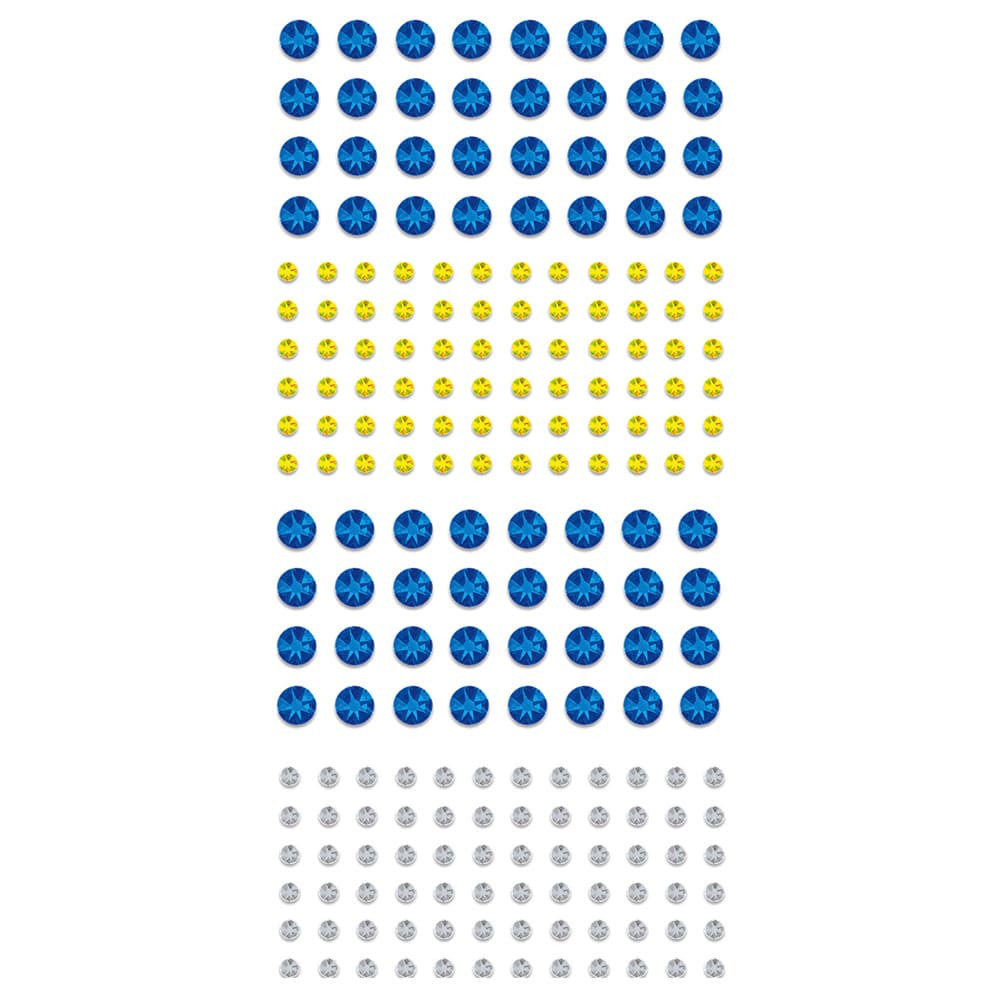 - Комплектът включва: 8 картонени плоскости, комплект кристали в 3 различни размера и цвята, кръгли стикери от пяна, приблизително 1000 броя, 12 плоскости, включително 4 с блясък, 4 самозалепващи се закачалки