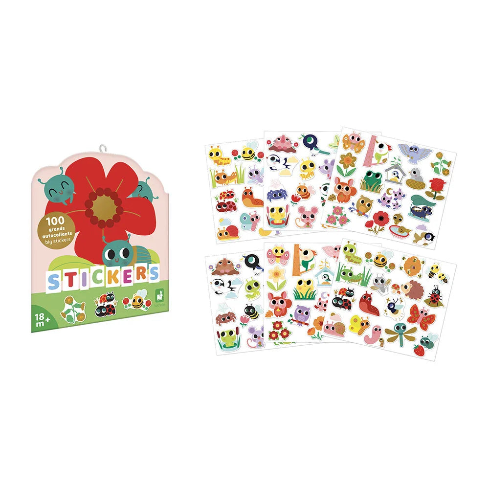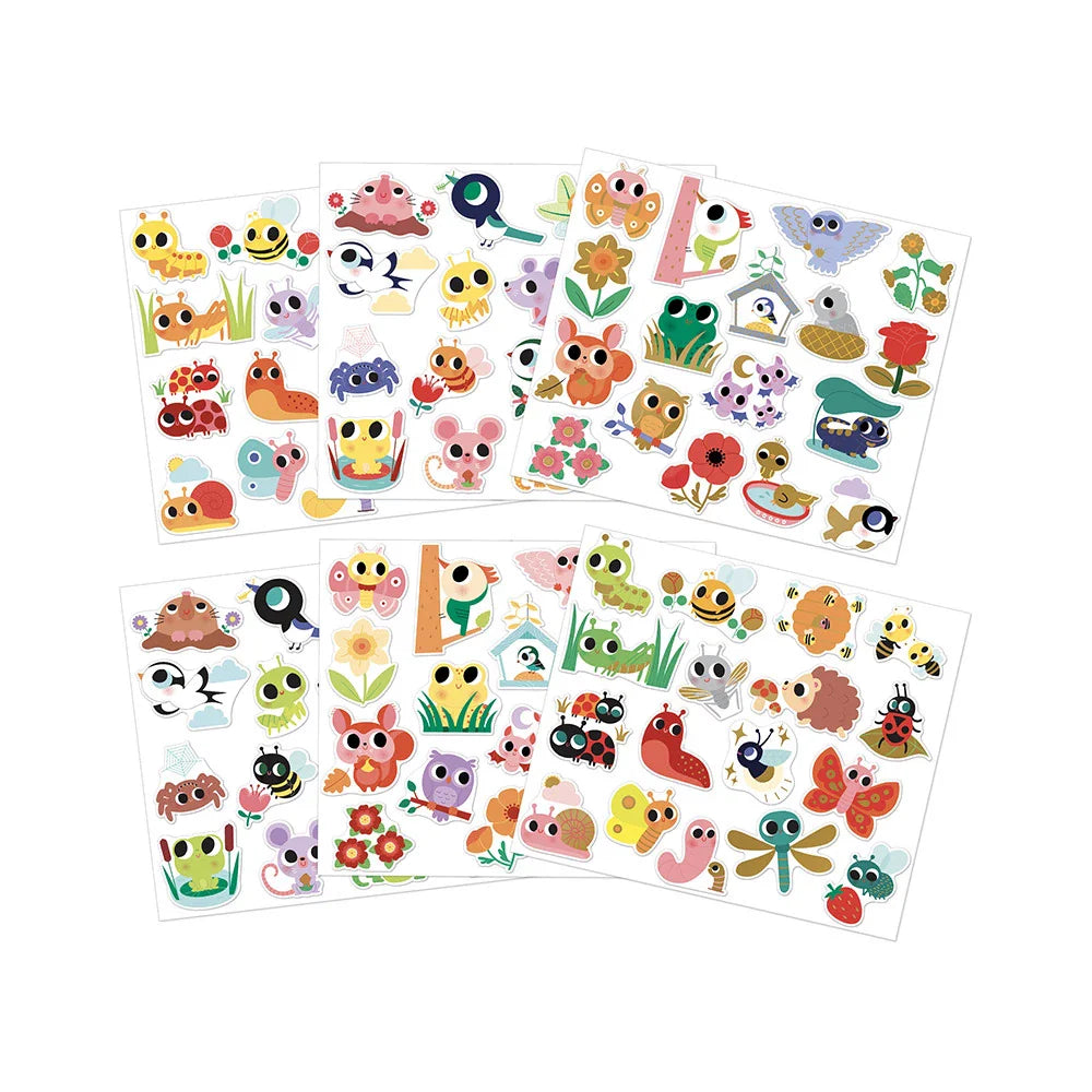 Комплектът Janod съдържа до 100 очарователни дизайна, което позволява стикерите да станат начало на много истории и творчески игри.