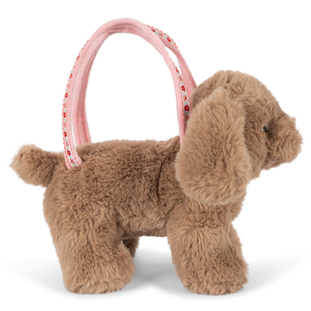 По този начин чантата с кученце на Konges Slojd съчетава функцията на играчка, първа „модна“ чанта и плюшена играчка – идеален подарък за малко момиченце, което обича да играе на ролеви игри и да имитира възрастните.