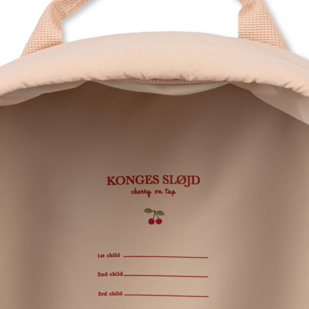 Детската раница Konges Slojd е с перфектни размери за ежедневните принадлежности: в нея се побират чанта за закуска, любима играчка и тънко суитшърт.