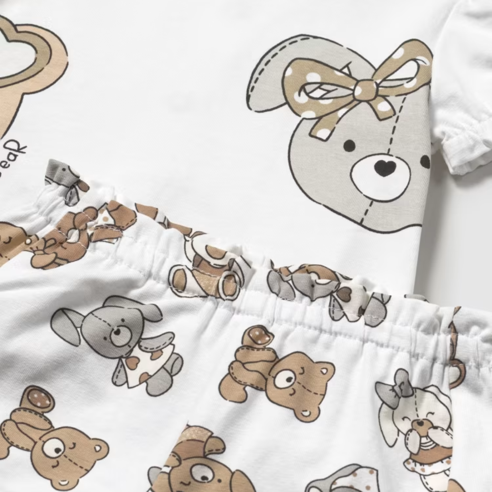 Шорти: Също изработени от смес от 95% памук и 5% еластан, шортите са удобни и леки, идеални за летните дни. Те предлагат комфорт и гъвкавост, позволявайки на вашето дете да се наслаждава на свобода на движение през целия ден.
