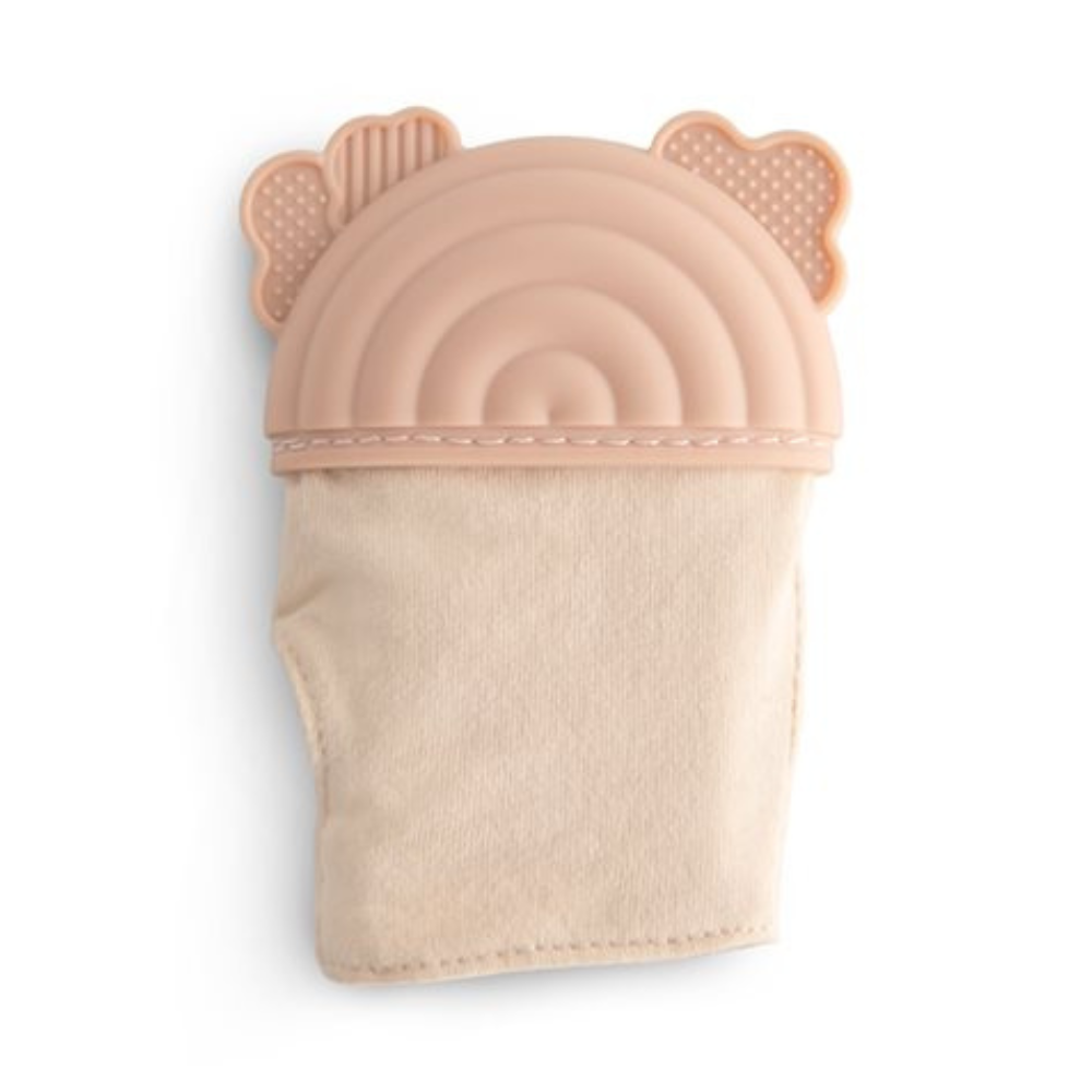 Dieser Beißring in Form eines Handschuhs ist ein praktisches Hilfsmittel für Kleinkinder, die gerade mit dem Zahnen beginnen und am liebsten mit der eigenen Hand kauen.