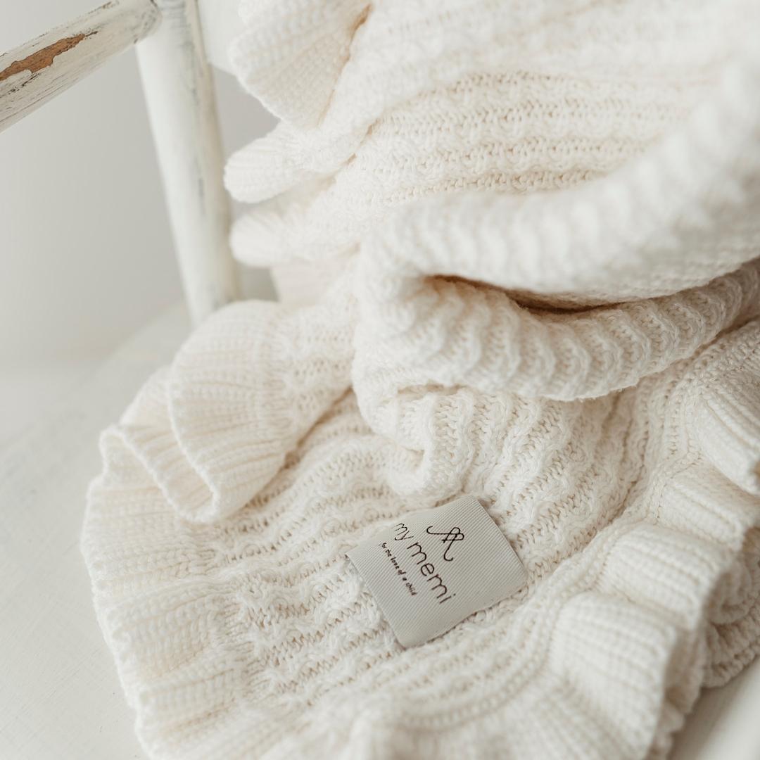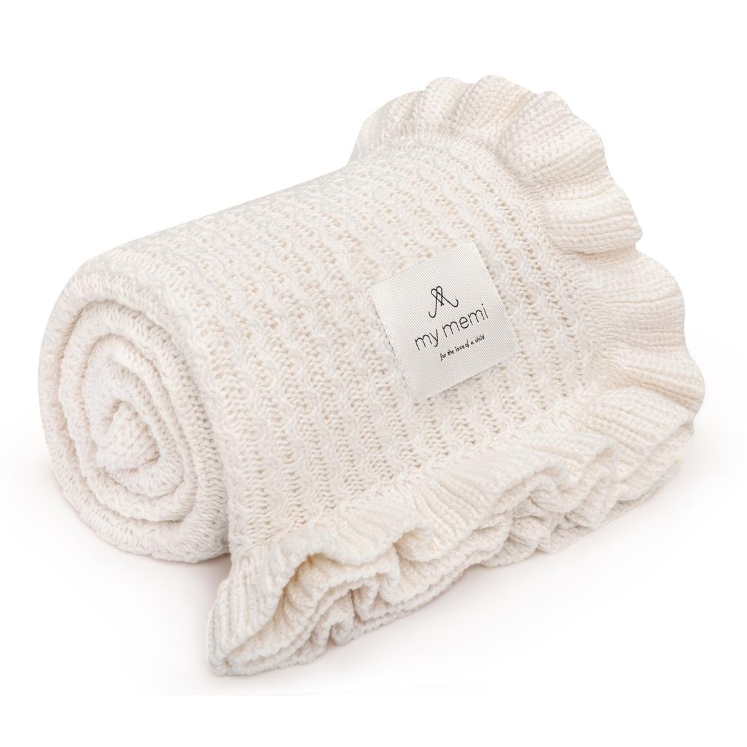 Бамбуковото бебешко одеяло с волани Memi е дишащо и не дразни нежната кожа на бебето.