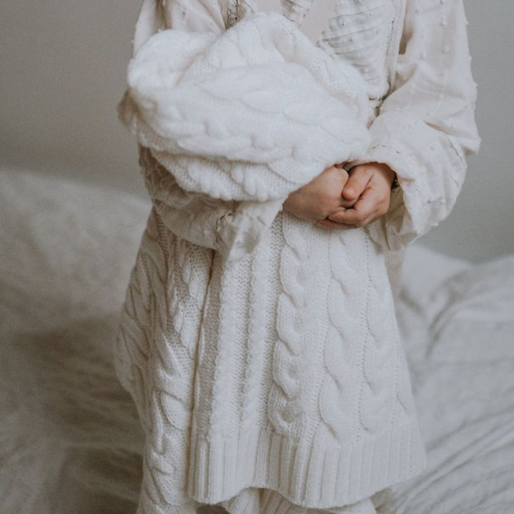Memi Одеяло от мериносова вълна крем