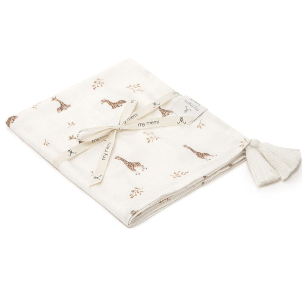 Memi Бамбукова постелка за преповиване с жирафи 75 x 100 cm
