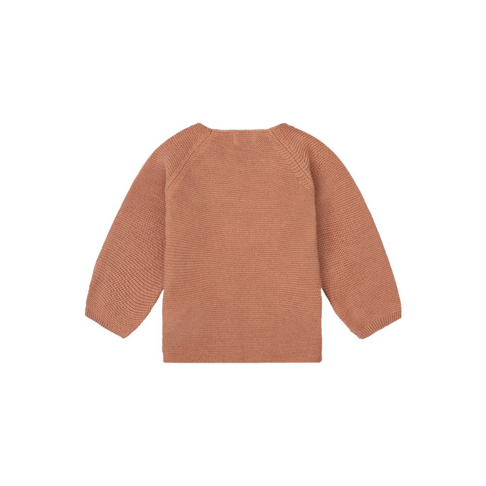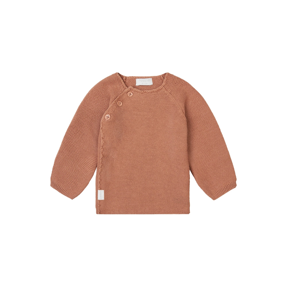 Моделът Pino има класически плетен вид, леко подгънат подгъв и три практични копчета, които улесняват обличането и събличането на дрехата.