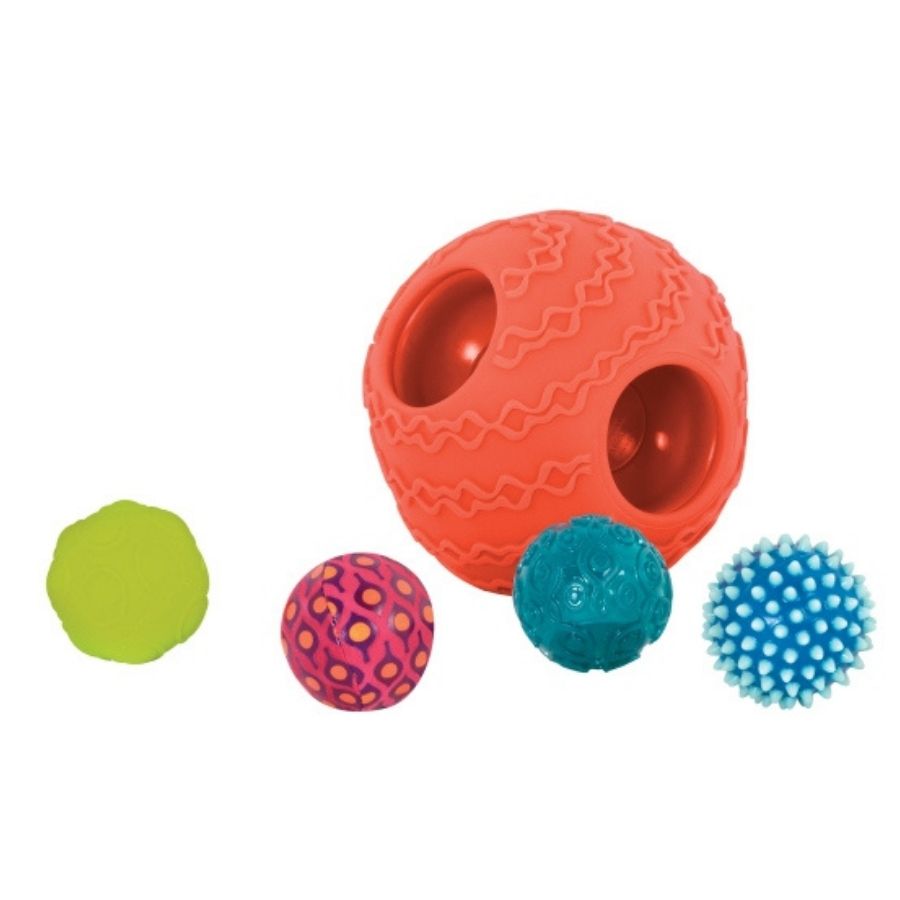 Големият коралов топ „мама“ Ballyhoo с 5 малки топчета е наградена играчка от B.toys.