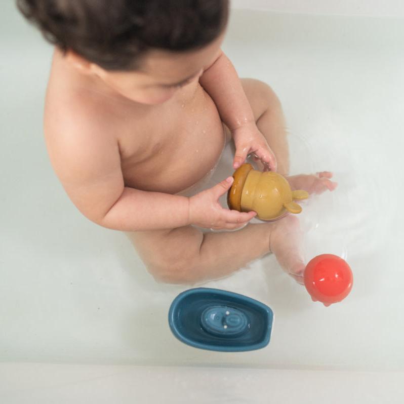Играчките за баня за бебета са безопасни – изработени са от нетоксични материали с най-високо качество, без BPA, олово, фталати и живак.