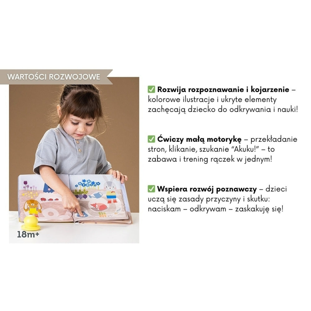 Taf Toys е обърнал внимание на всеки детайл, за да направи книжката издръжлива, лесна за употреба и подходяща за ежедневна игра.