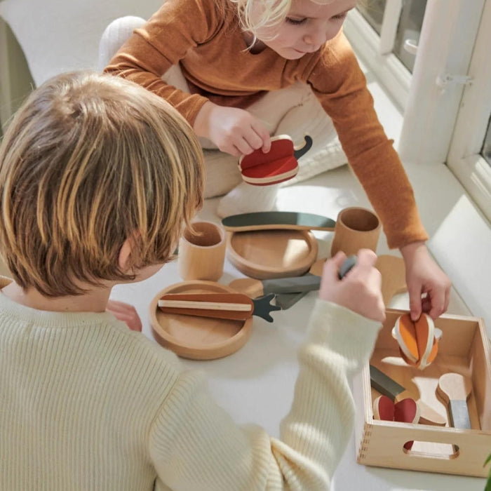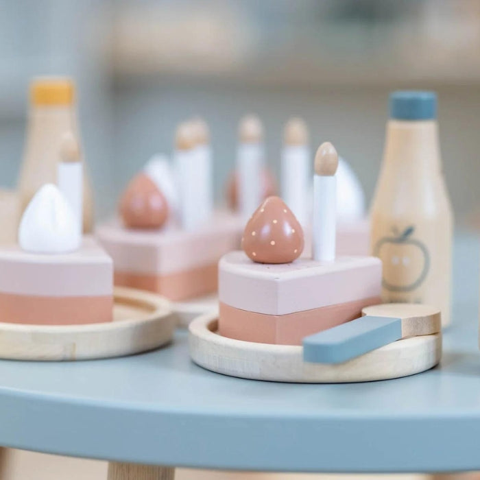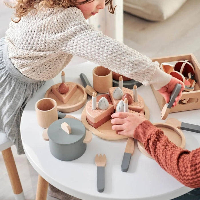 Този пълен комплект за маса позволява на малкия готвач да организира партита и да обслужва всеки гост с грижа.