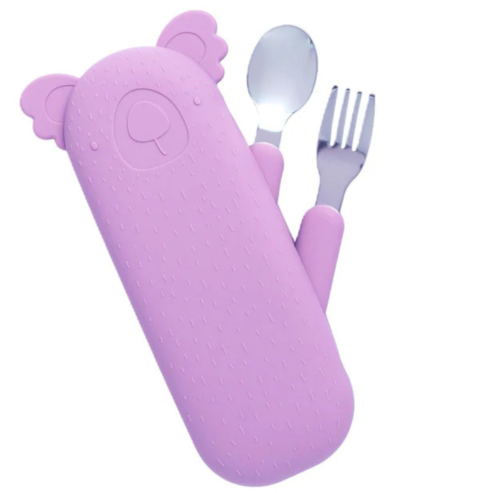 The Cotton Cloud Детски комплект прибори за хранене в калъф Zoe the Koala в люляково