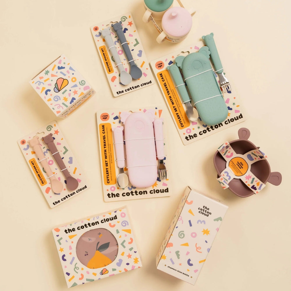 Cotton Cloud е помислил и за практичната страна – включен е силиконов калъф, който ви позволява да съхранявате приборите на детето си хигиенично у дома и когато сте навън.