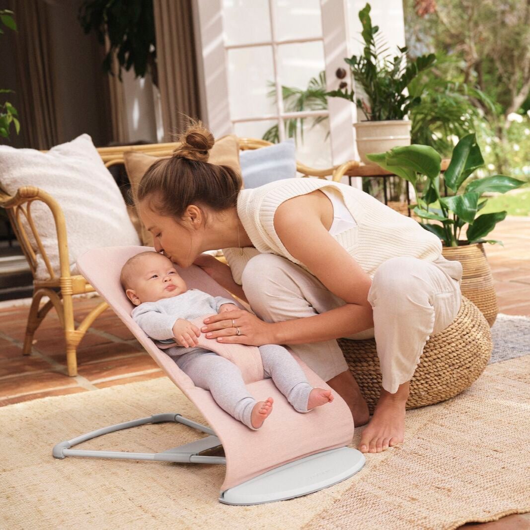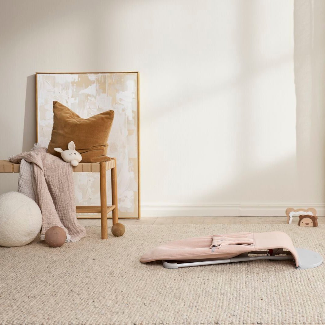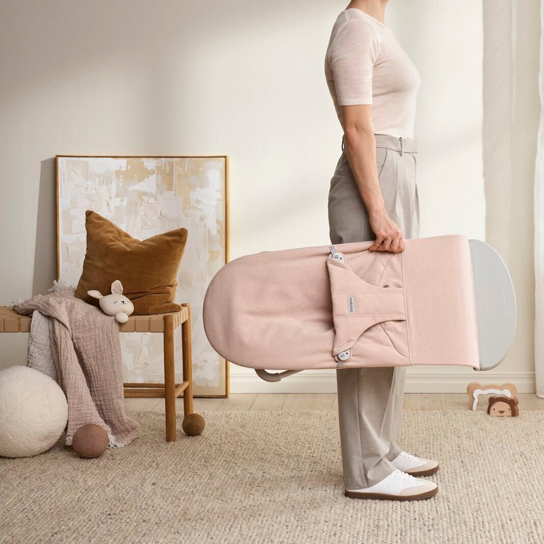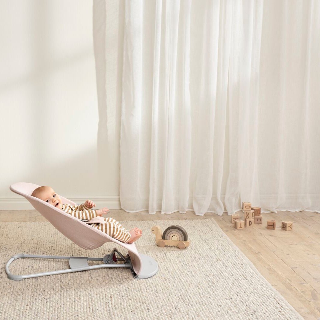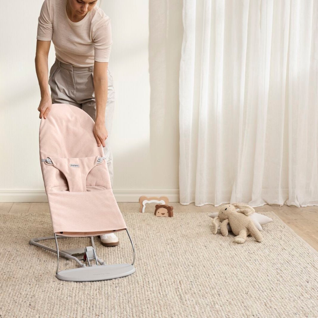 Лека розова меланжирана люлка за бебета Bliss Woven Light Pink Melange Baby Lounger от Babybjorn.