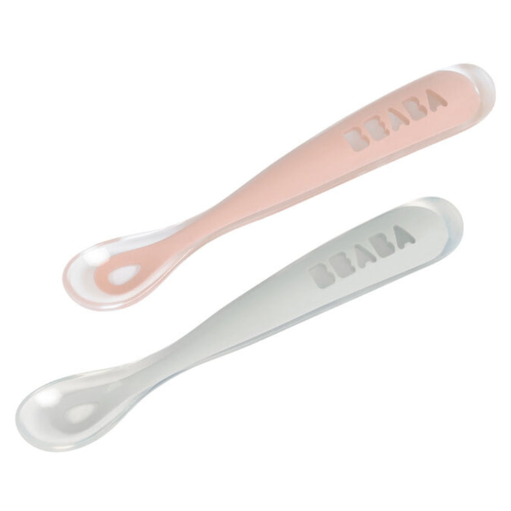 Две бебешки лъжички в старинно розово в кутия за пътуване от Beaba.