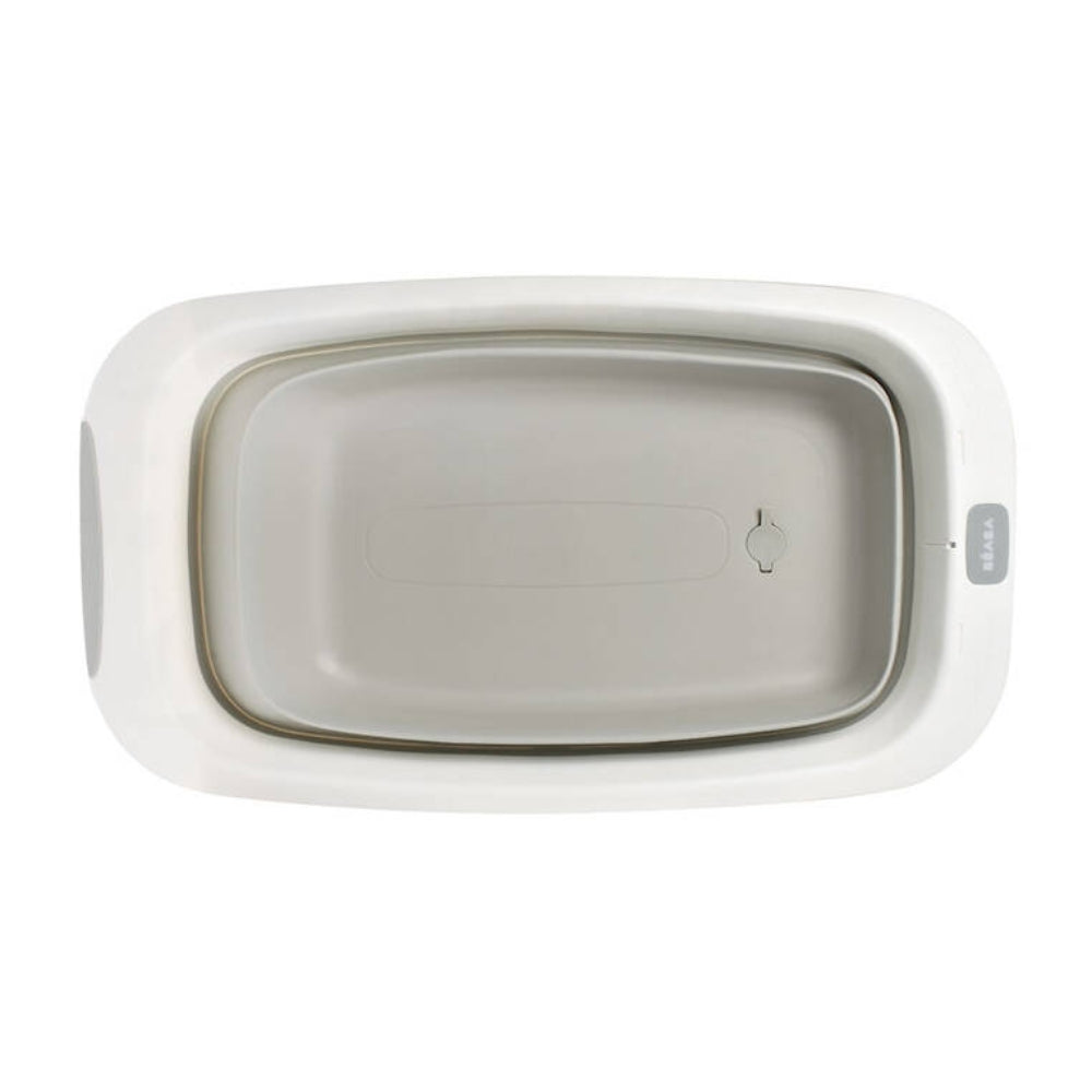 Ванната на Beaba има ергономична форма, правоъгълна и доста просторна, с обтекаеми ръбове и по-широки кантове, което гарантира безопасно и комфортно къпане, дори за по-големи бебета, които седят самостоятелно.