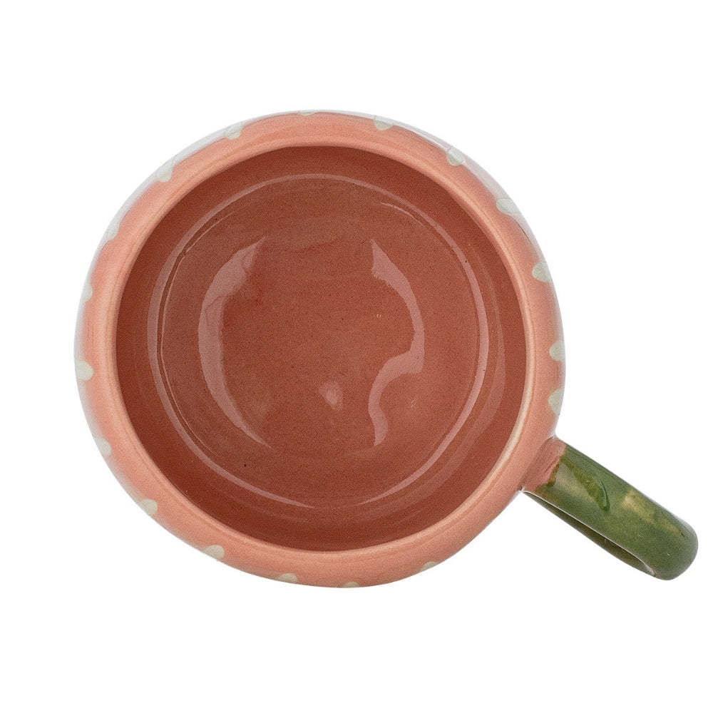 Чашата от каменна керамика впечатлява с лъскаво покритие и кръгла дръжка в контрастен зелен цвят, което я прави по-лесна за държане от малки ръце.