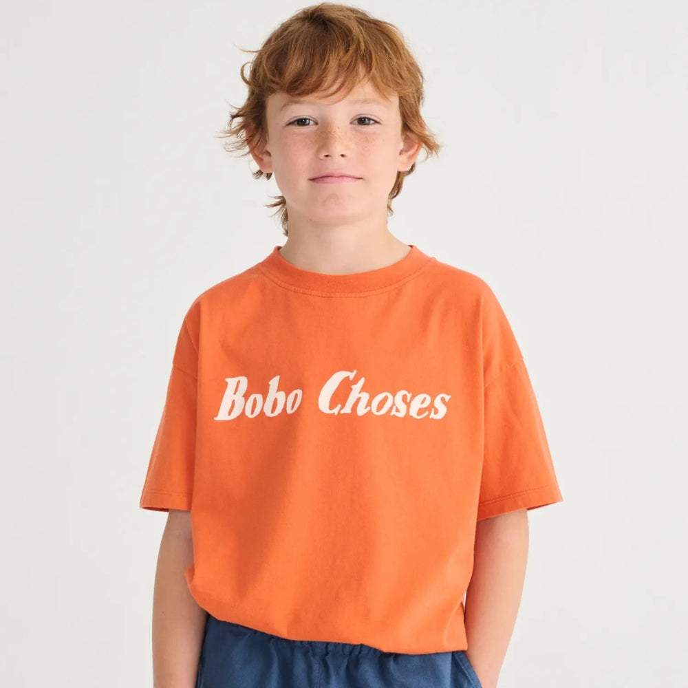 Детската тениска Bobo Choses в ярко оранжев цвят е удобна опция за всеки ден, създадена с мисъл за комфорта и свободата на движение на вашето дете.