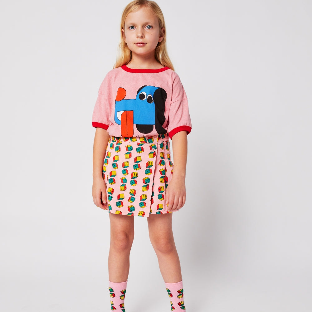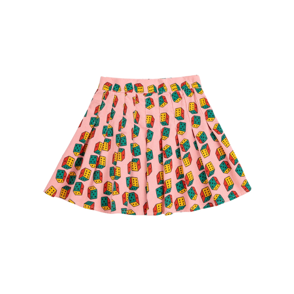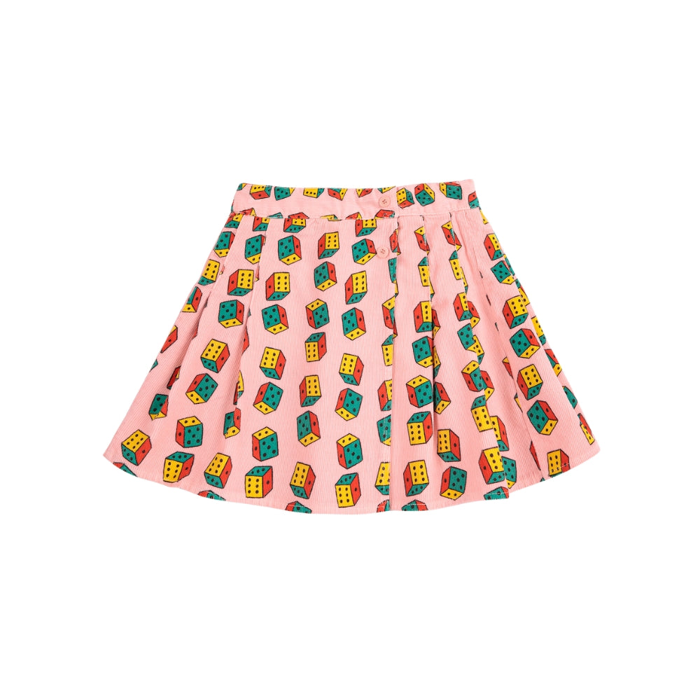 Късата пола от велур с мотив „Dices all over“ от Bobo Choses е уникална дреха за всяка малка любителка на оригиналния стил.