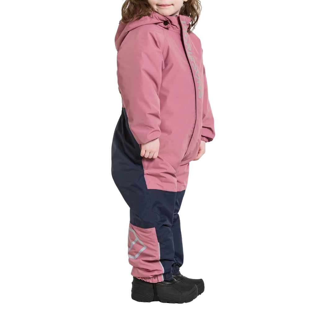 Еднокомпонентният зимен костюм на Didriksons е за родители, които търсят надеждна защита от студа и влагата – независимо колко интензивно си играе детето им.