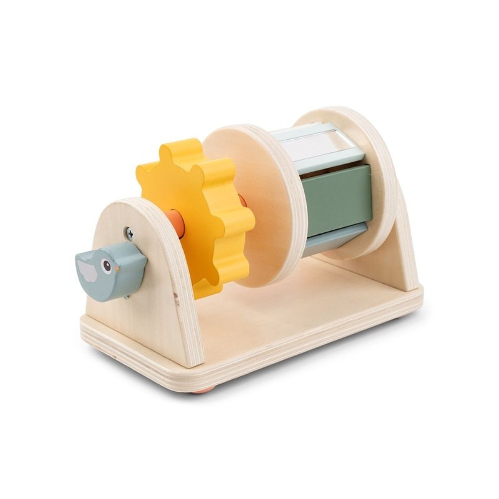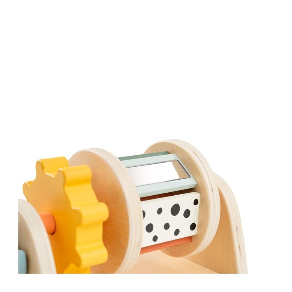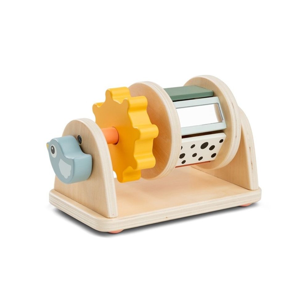 Тази въртяща се играчка на колелца от Done By Deer е идеалният избор за бебета от 3-месечна възраст, като подпомага развитието им, докато си играят по коремче и в седнало положение.