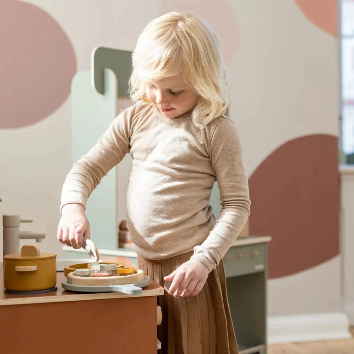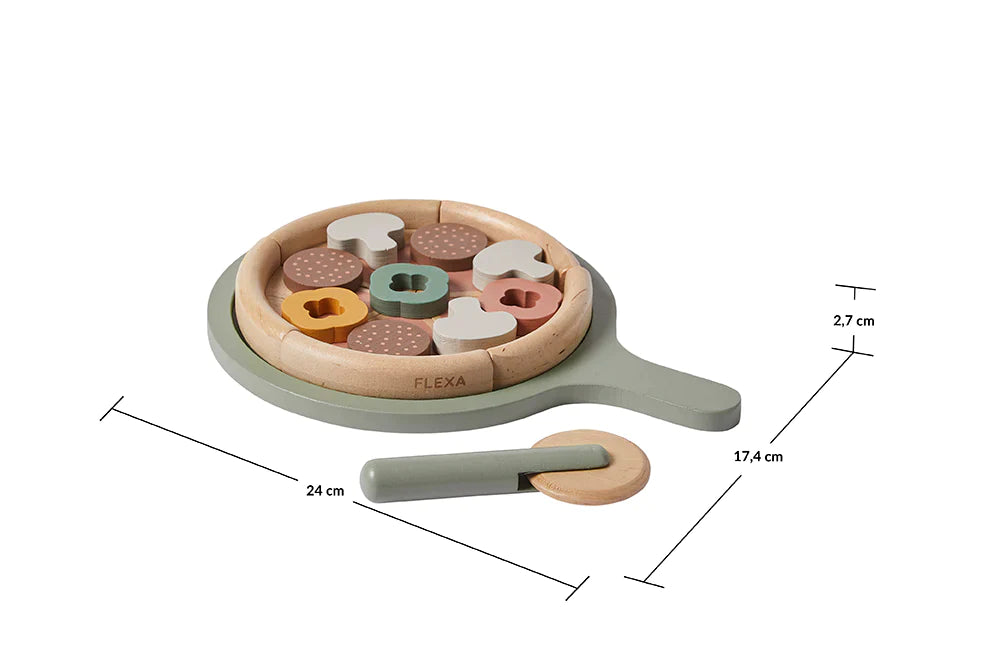 Дървената пица с нож, тава и гарнитури от Flexa ще бъде перфектно допълнение към детската стая.