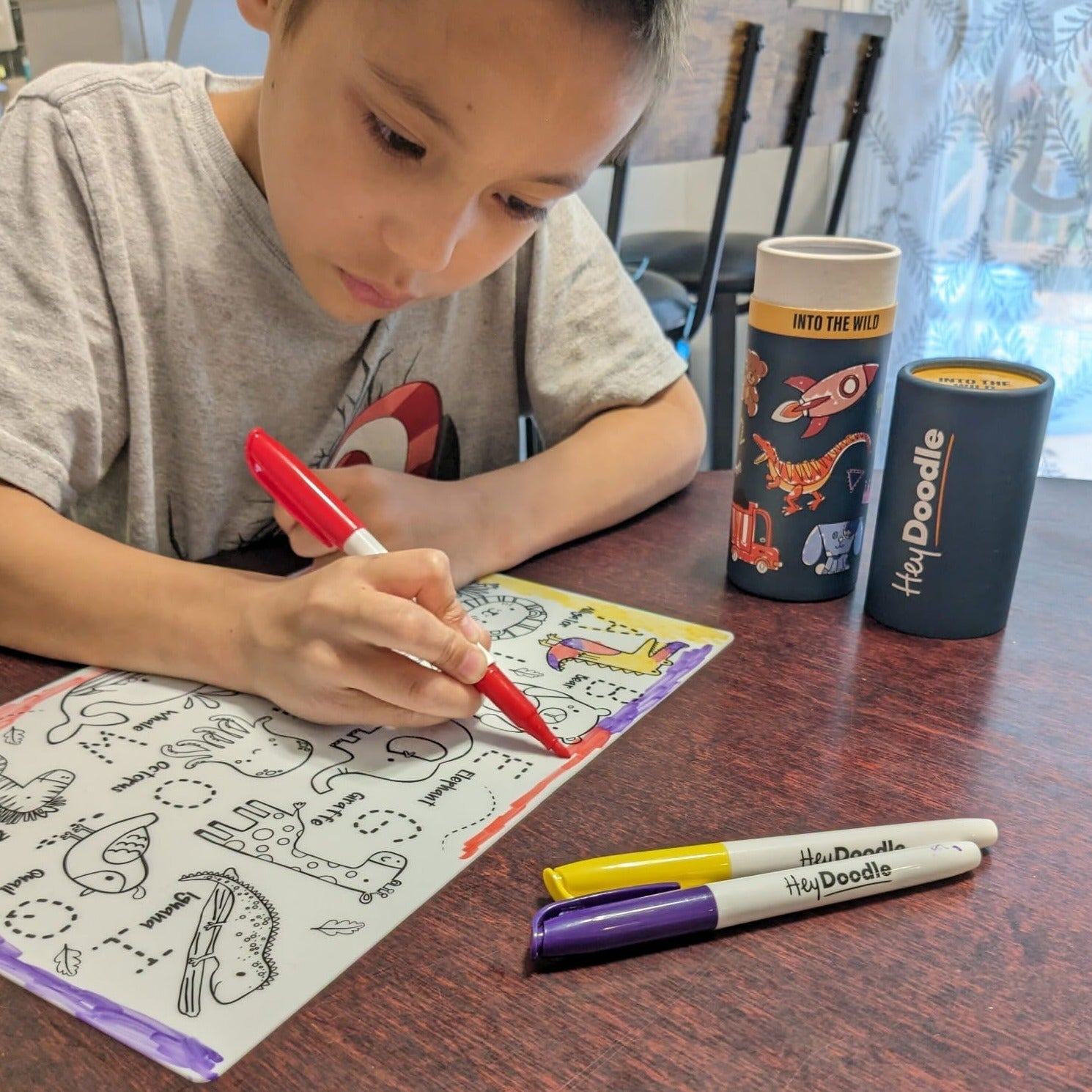 Силиконовата подложка „Диви животни“ на HeyDoodle е идеалното средство за творческа игра и учене за деца.