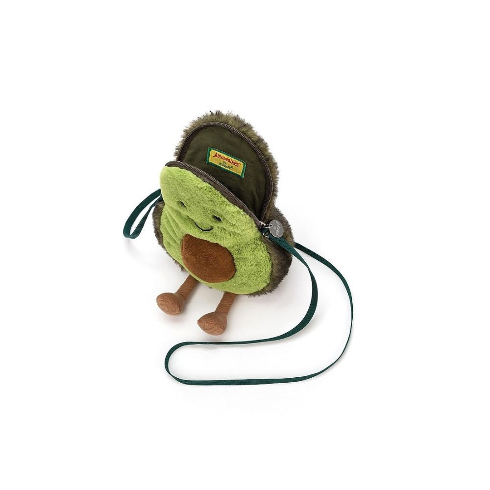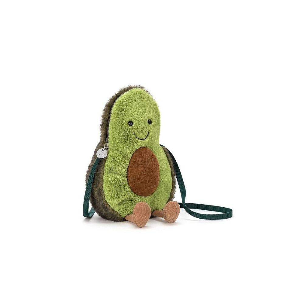 Закачливата детска чанта през рамо с авокадо от Jellycat е очарователен зелен аксесоар с ремък и цип, идеален за съхранение на ценни дреболии.