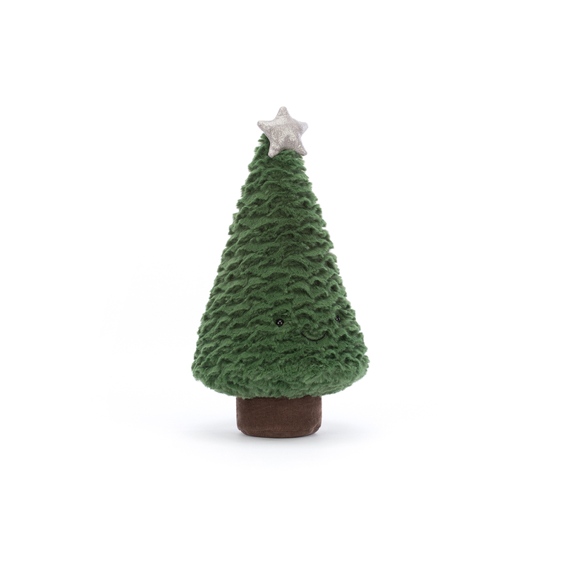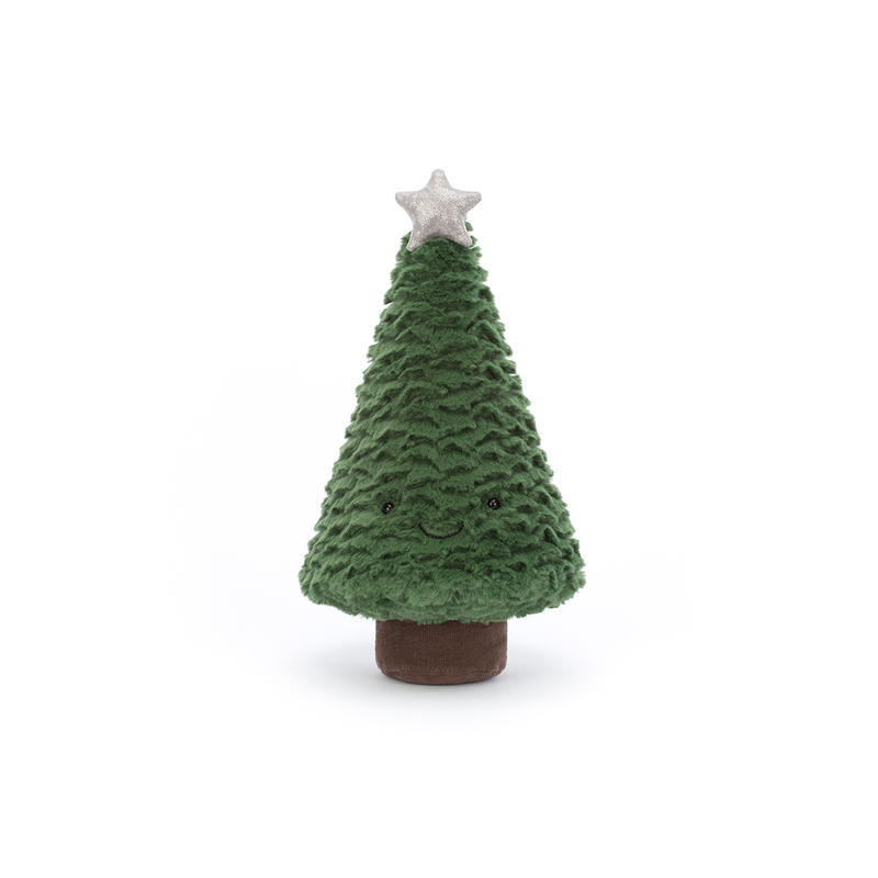 Der immergrüne Weihnachtsbaum mit einem glänzenden silbernen Stern ist ein einzigartiges Weihnachtsmaskottchen von Jellycat.