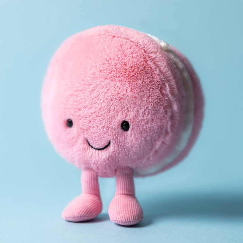 Jellycat е обърнал внимание на детайлите: усмихнатото лице, цвета на макарона и приятните на допир материи.