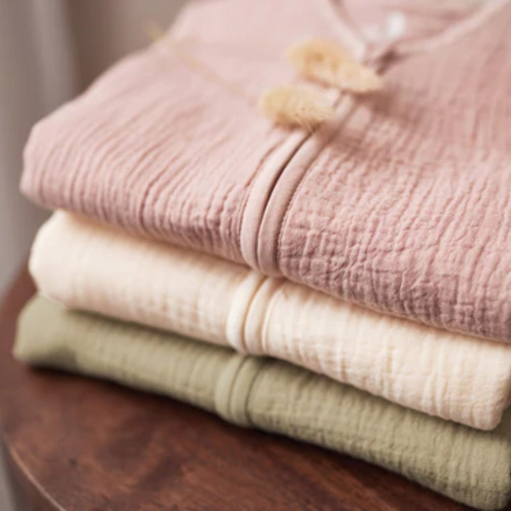 Изработен от мек, дишащ муслин, идеален за лятото.