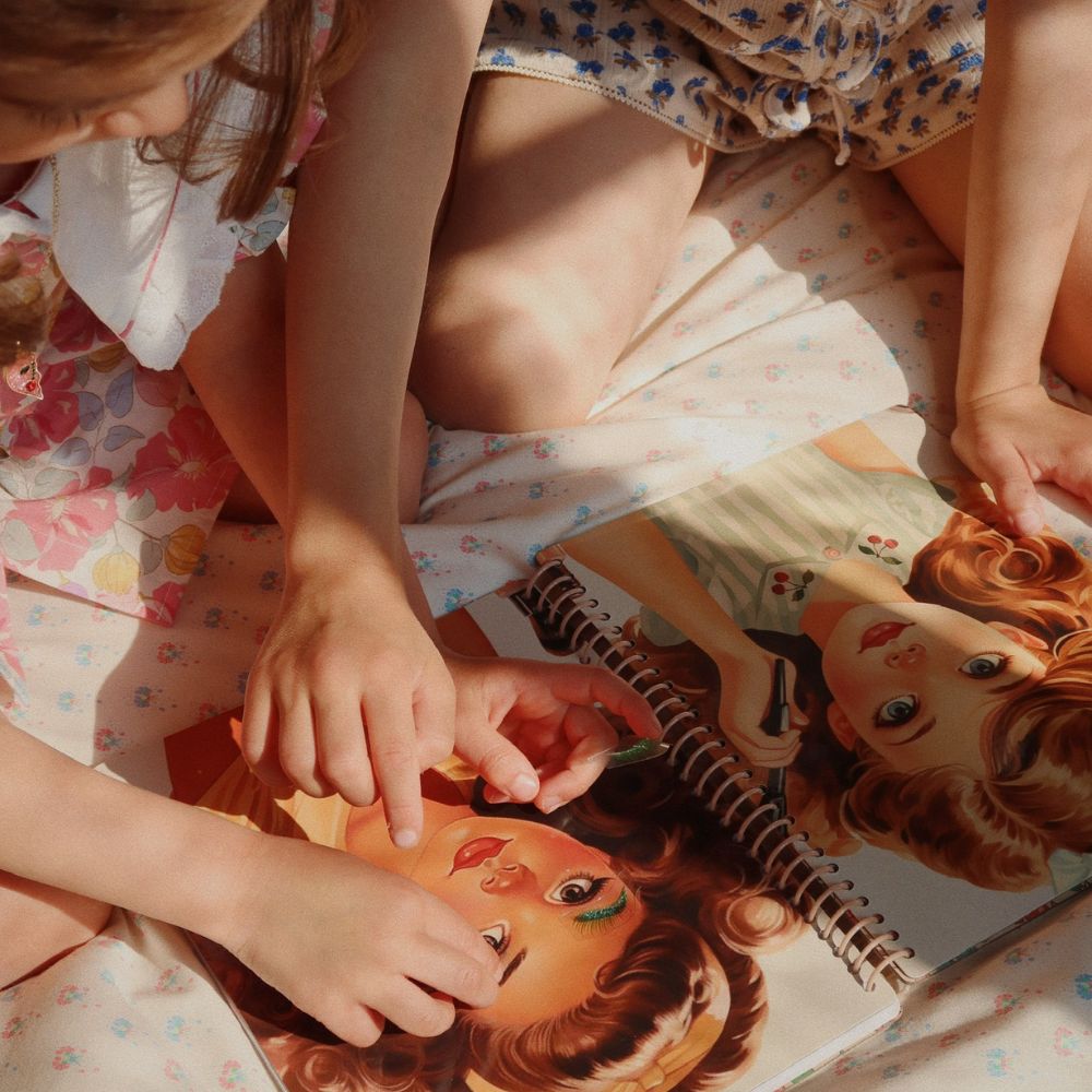 В нея ще намерите лица в ретро стил, които само чакат да бъдат украсени с вежди, мигли, слънчеви очила и много други аксесоари.