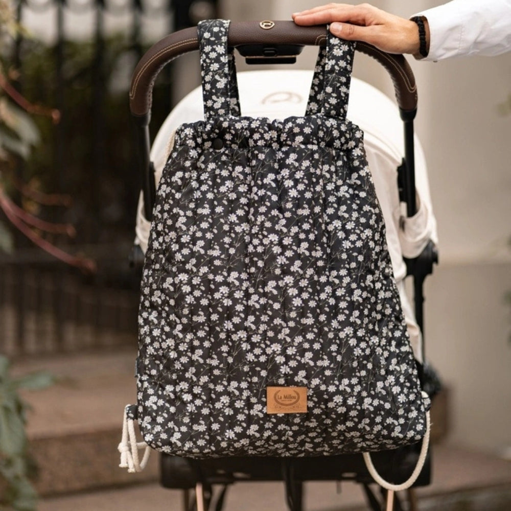 Красива черна стегана раница за количка от La Millou.