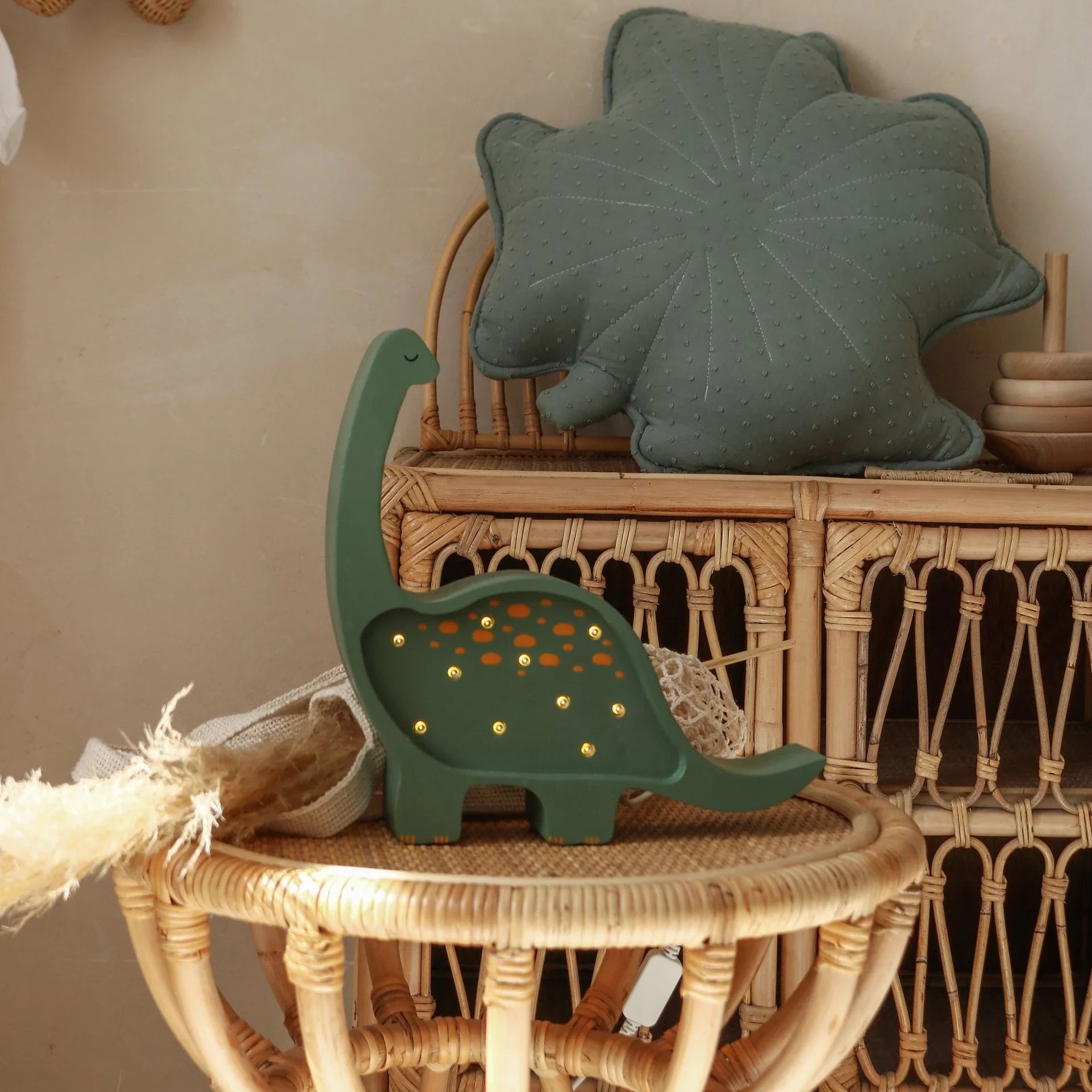 Лампата Little Lights във формата на динозавър е идеалното допълнение към детската стая, създавайки магична атмосфера по време на игра и вечерно четене.
