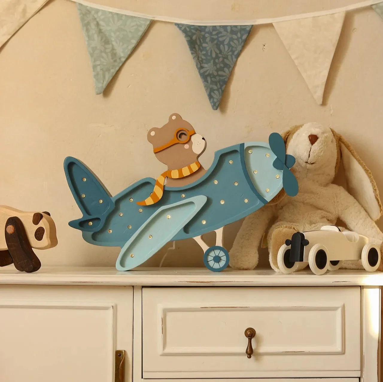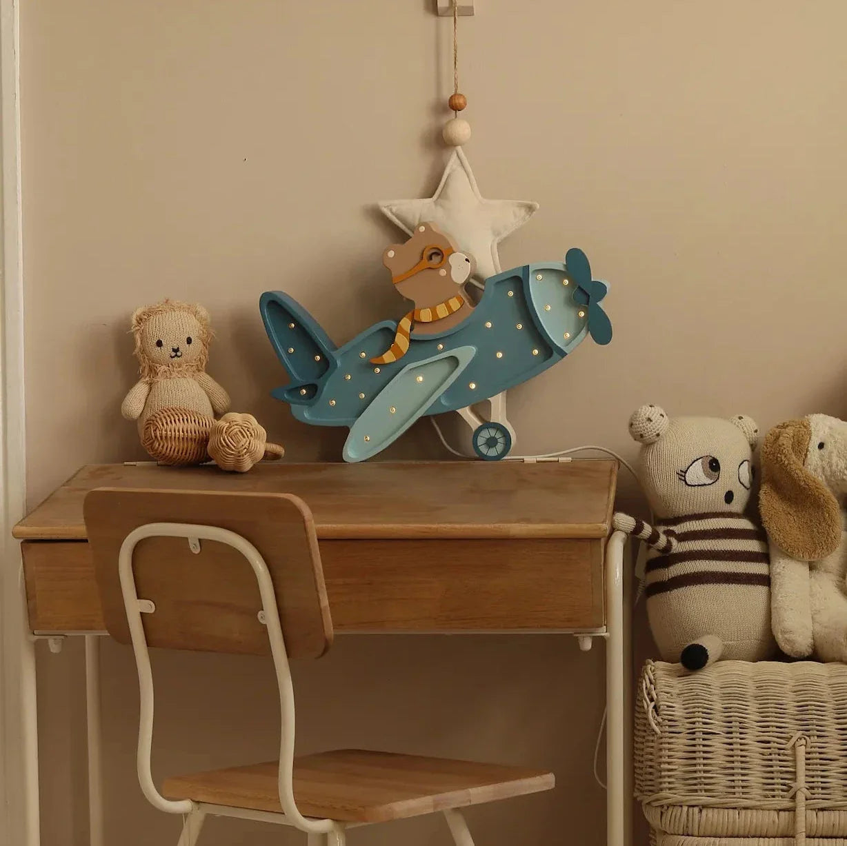 Лампата Little Lights във формата на самолет е идеалното допълнение към детската стая, създавайки магична атмосфера по време на игра и вечерно четене.