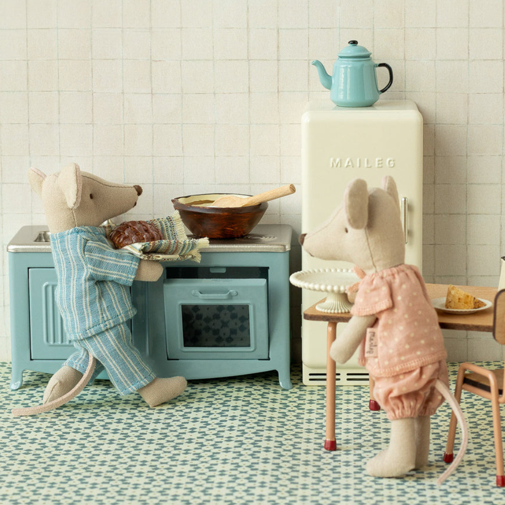Die Liebe zum Detail von Maileg sorgt dafür, dass jedes Stück wie ein echtes Zuhause aussieht und dazu anregt, eigene kulinarische Geschichten zu erfinden.