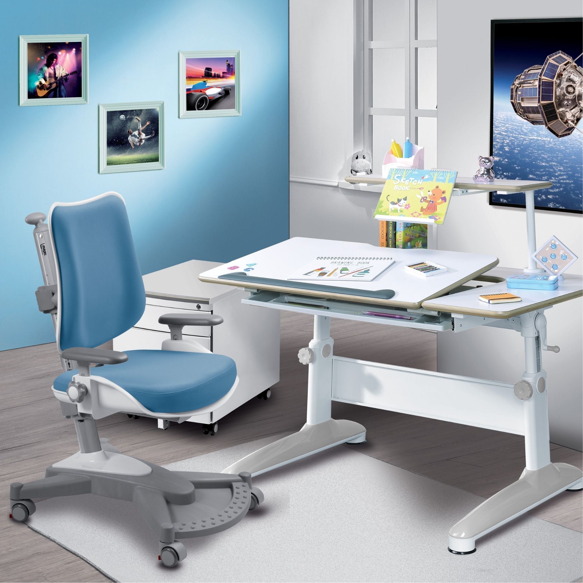 Висококачествениятергономичен стол „ ”, който расте заедно с вашето дете „MyChamp ” в син цвят от марката Mayer е идеалната покупка за всяка детска стая. Той ще осигури правилната позиция на тялото, което ще предпази детето от развитие на дефекти в стойката.