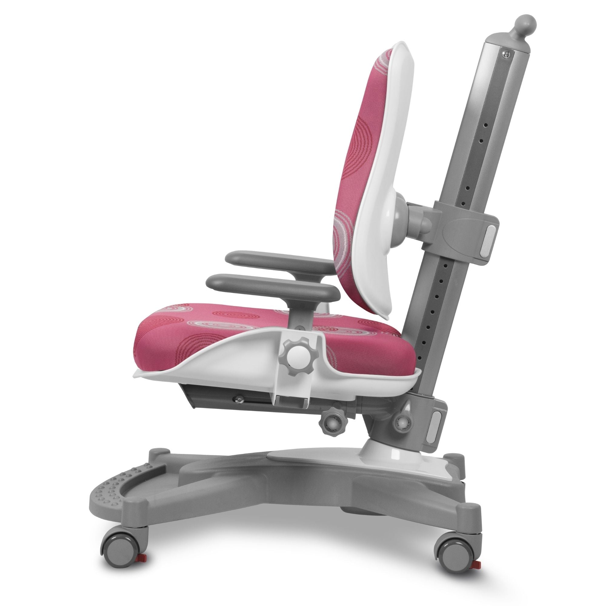 Висококачествениятергономичен стол „ ”, който расте заедно с вашето дете „MyChamp ” в розово с мотив на колела от марката Mayer е идеалната покупка за всяка детска стая. Той ще осигури правилно положение на тялото, което ще предпази детето ви от развитие на дефекти в стойката.