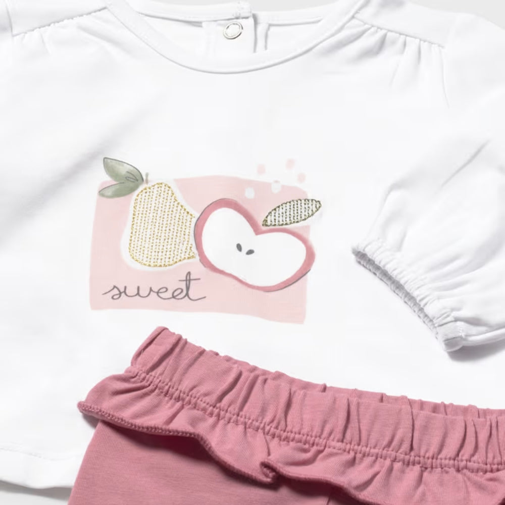 Комплектът Mayoral се състои от три съчетани части, които образуват хармонично и стилно цяло от първите дни на живота.